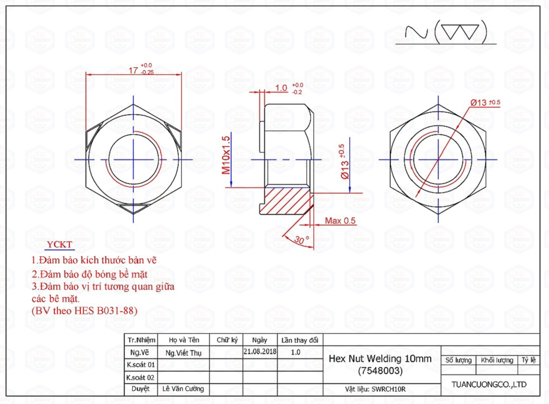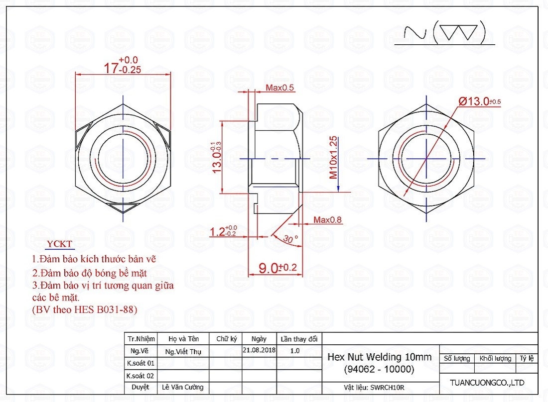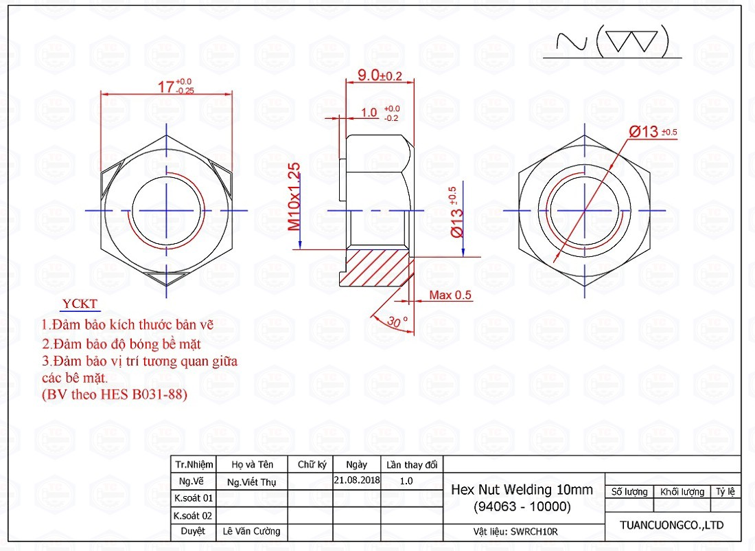 Vật liệu: SWRCH10A - SWRCH10R