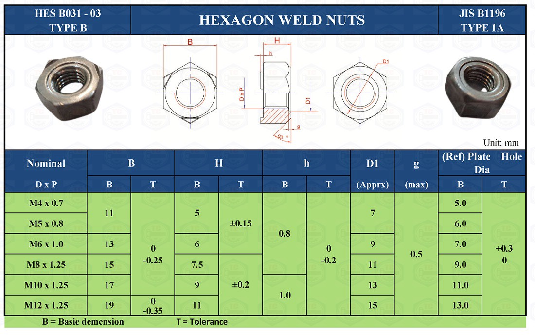 Tiêu chuẩn: HES B031 - 03 or JIS B1196 type A - Type B